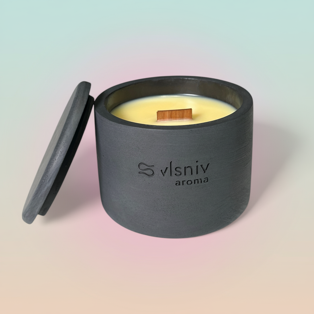 Соєвий віск, дерев'яний ґніт, сертифікована ароматична олія преміум класу.