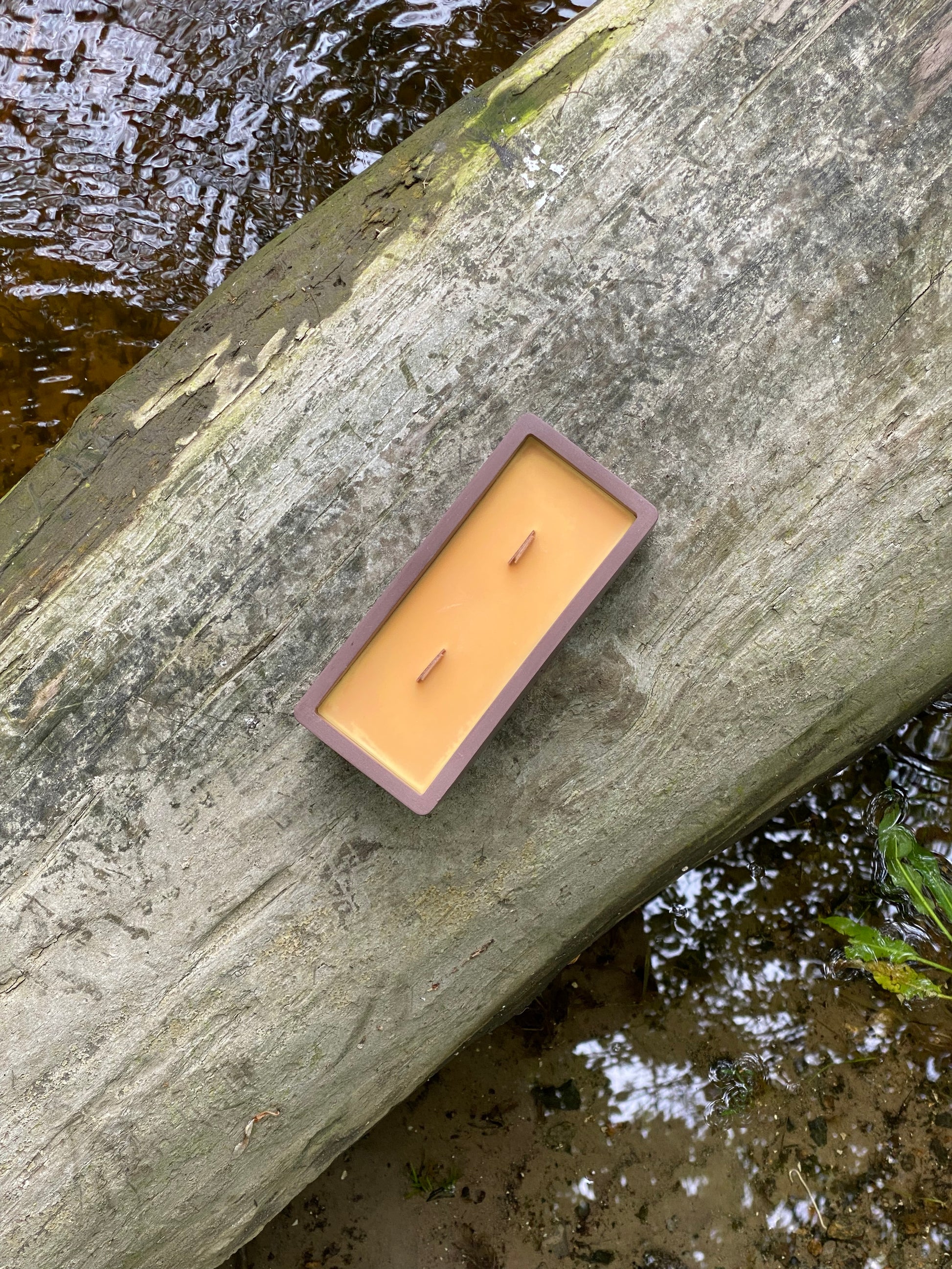 Склад: соєвий віск, дерев’яний ґніт, ароматична олія, свічковий барвник