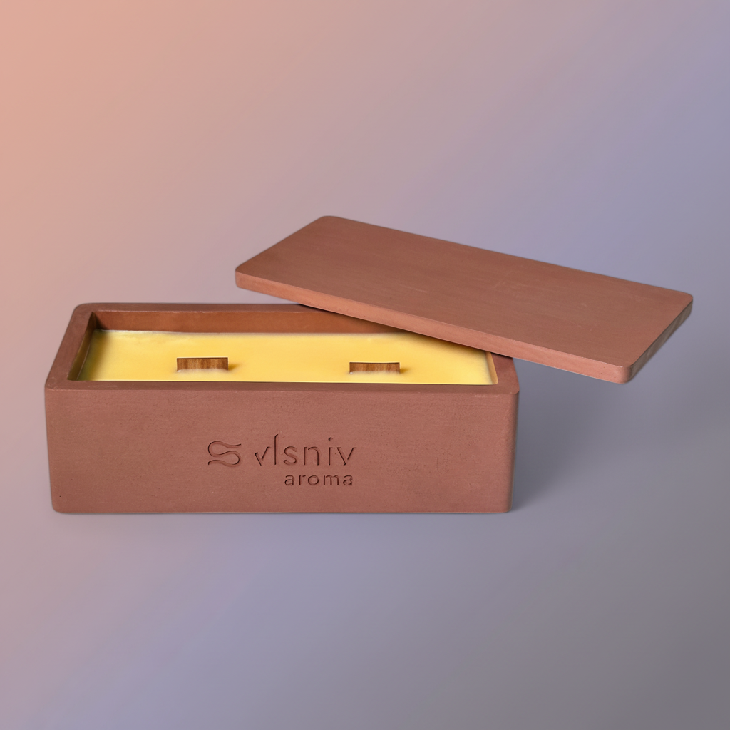 Соєвий віск, дерев'яний ґніт, сертифікована ароматична олія преміум класу.