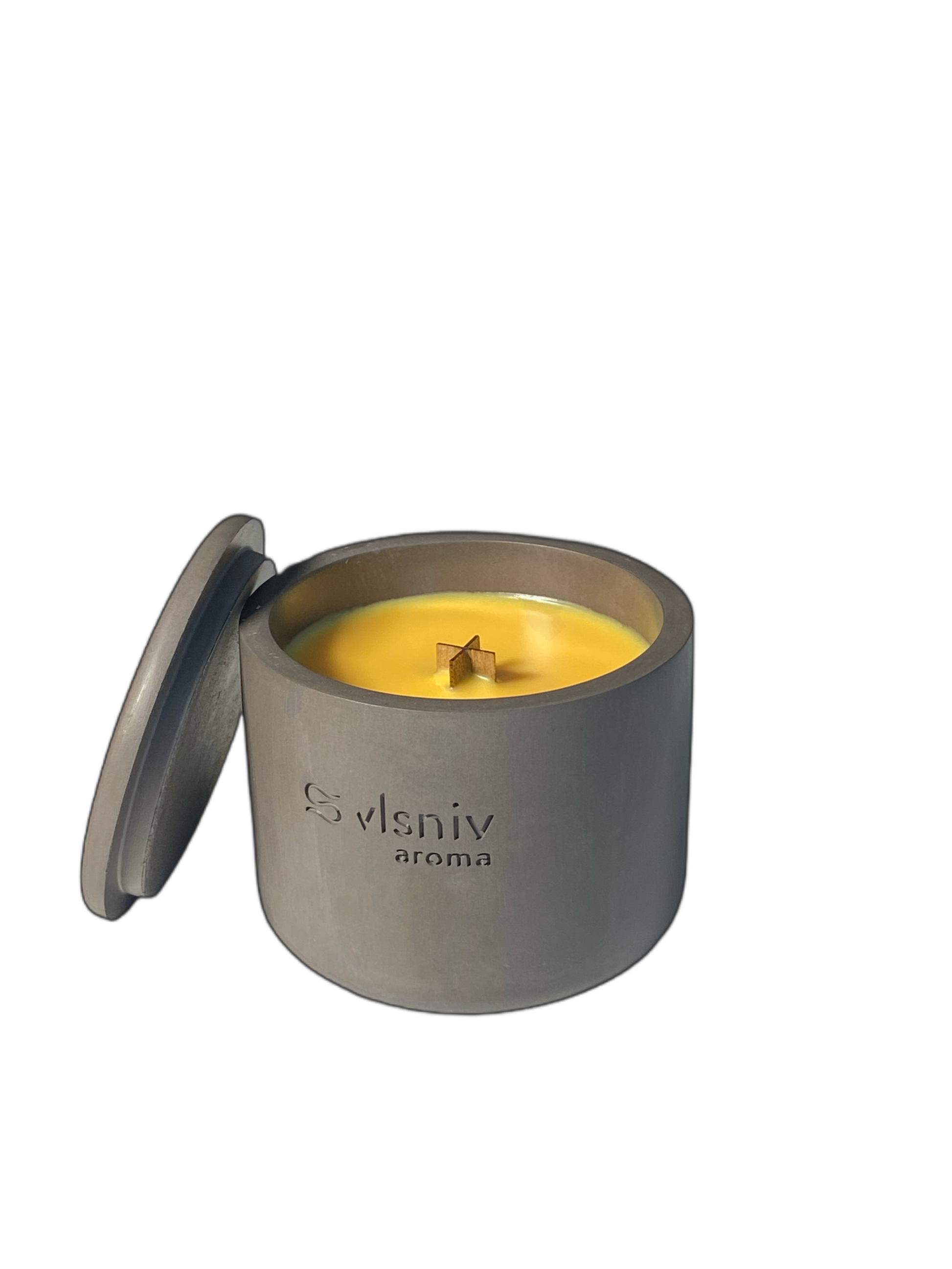 Склад: соєвий віск, дерев’яний ґніт, ароматична олія, свічковий барвник