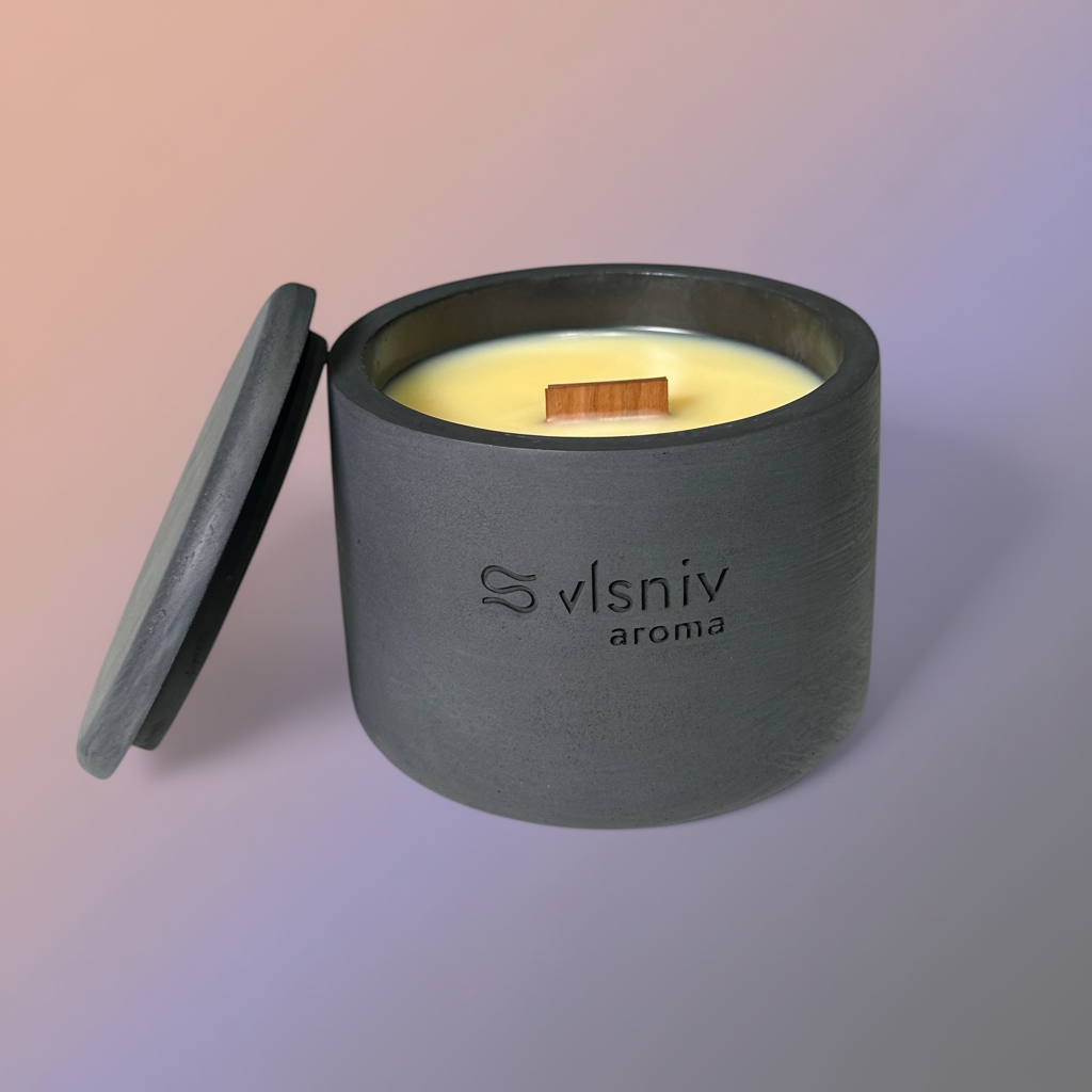 Соєвий віск, дерев'яний ґніт, сертифікована ароматична олія преміум класу.
