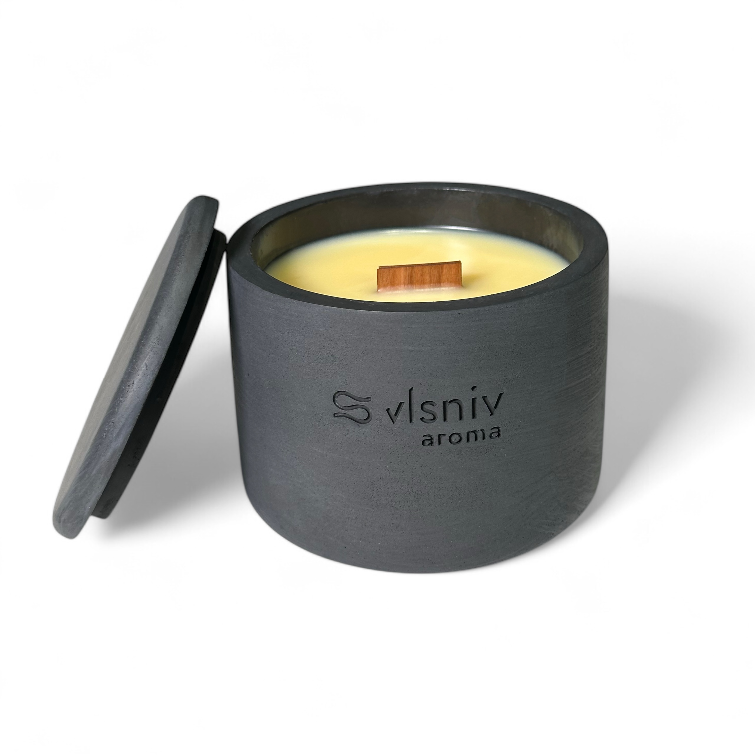 Склад: соєвий віск, дерев’яний ґніт, ароматична олія, свічковий барвник
