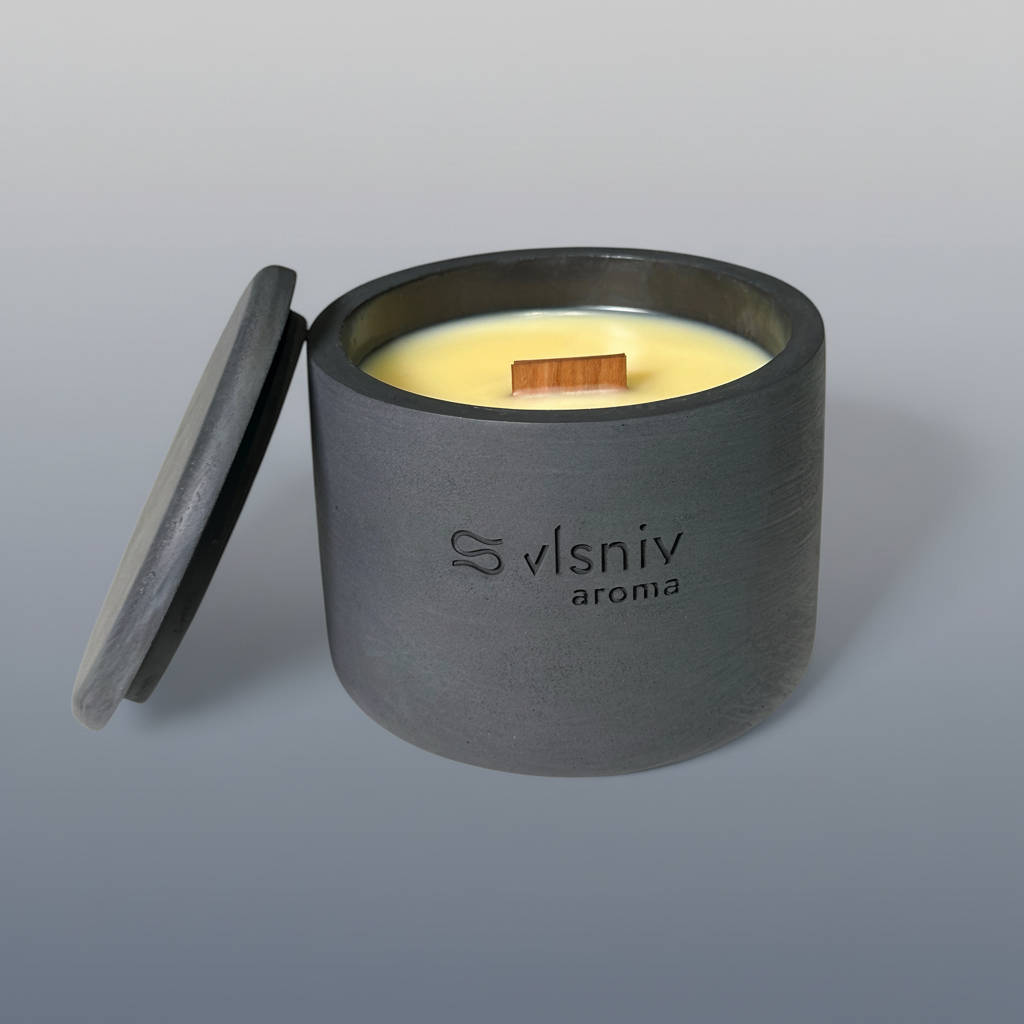 Соєвий віск, дерев'яний ґніт, сертифікована ароматична олія преміум класу.