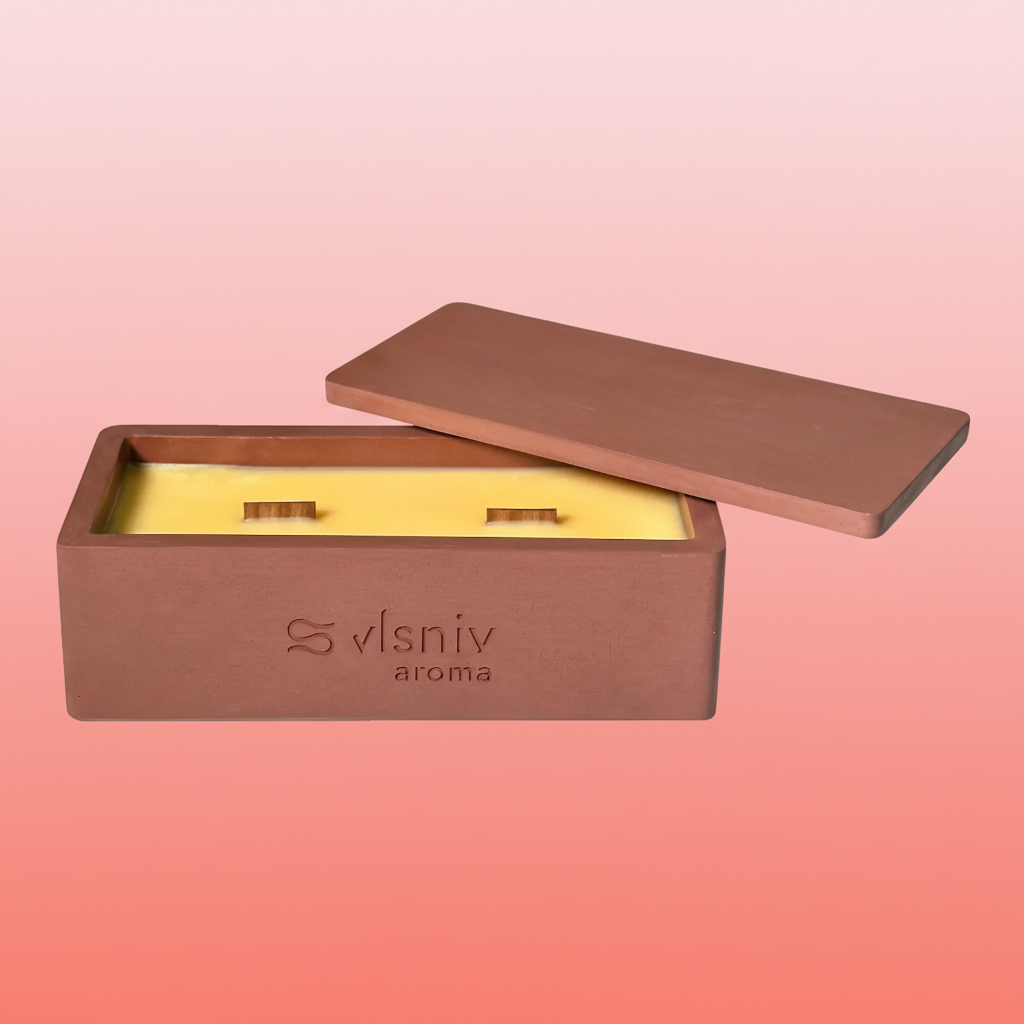 Соєвий віск, дерев'яний ґніт, сертифікована ароматична олія преміум класу.