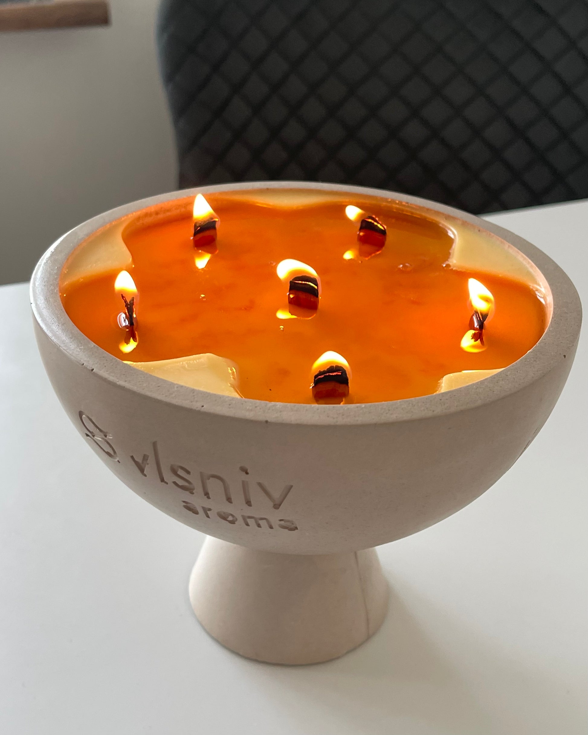 Склад: соєвий віск, дерев’яний ґніт, ароматична олія, свічковий барвник