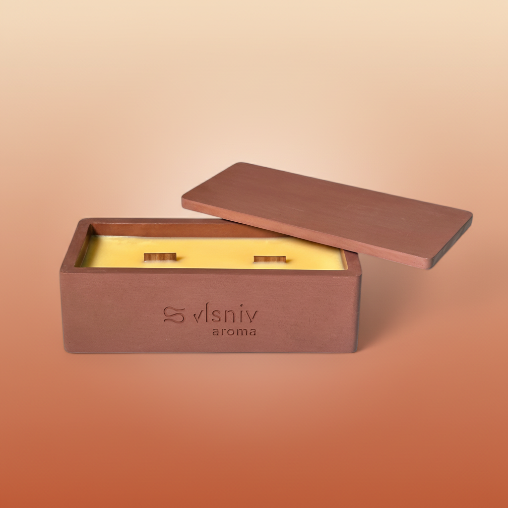 Соєвий віск, дерев'яний ґніт, сертифікована ароматична олія преміум класу.